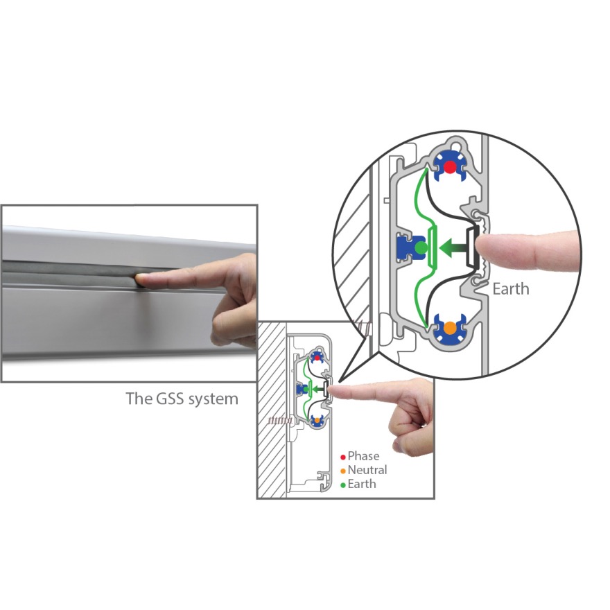 Free yourself from the limitations of conventional system and embrace the freedom of Eubiq – because electrical power is now everywhere you want it to be. Henceforth, your electrical outlets will always be in the right place! The power track is installed and electrically powered at one end. Eubiq accessories (sockets, universal adapters, USB chargers, lamps) are positioned on the power track at the desired location. The installation is facilitated and this represents a considerable saving of time. No need for electrical knowledge to install, add or move a power outlet. ![]() View of the removed plug ![]() View of the plugged-in socket ![]() Safest system - GSS (Grounded Sentry Shutter) GSS (Grounded Sentry Shutter) System is a patented safety feature found in all Power Tracks and the Wall Sockets. It effectively grounds all conductive objects that come into contact with the power track, making it virtually impossible for any hazardous 'shock'. Eubiq products are designed to the essential international electrical safety standards. They meet the European IEC standard, the French NF standard, the Singapore standard (SS), the India standard (IS), the British standard (BS), the Malaysia stanard (MS), the SASO standard ... Eubiq has certification from many reputed laboratories in many countries : TÜV SÜD PSB Corporation, ASTA BEAB, Testing & Certification Australia (TCA), GOST.R Russia, Intertek ETL-Semko, Korean Testing Laboratory (KTL), JET Laboratory, Underwriters Laboratory (UL), DEKRA Certification B.V., IMQ, etc. ![]() ![]() |